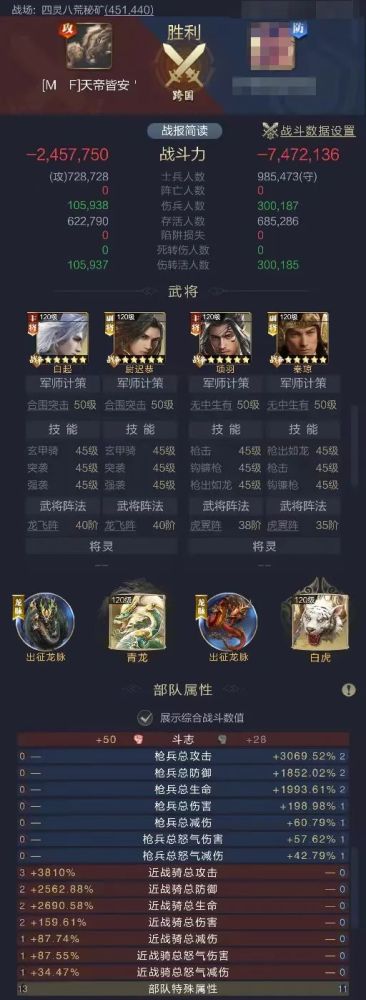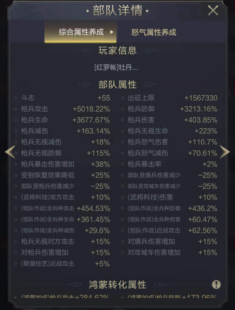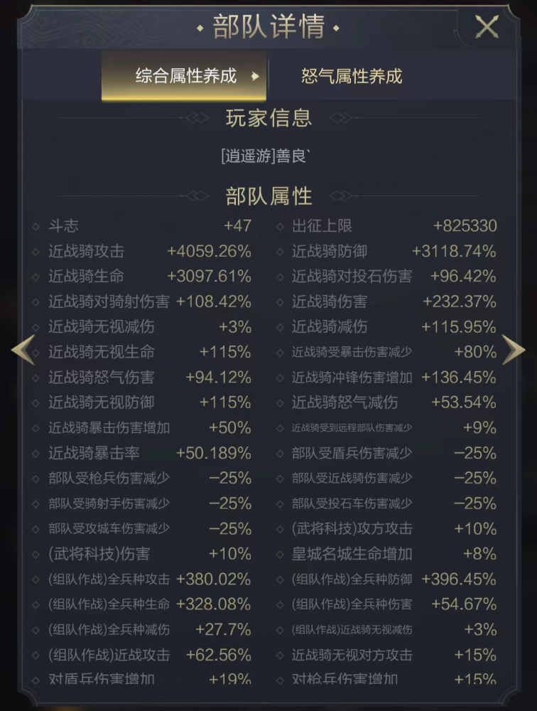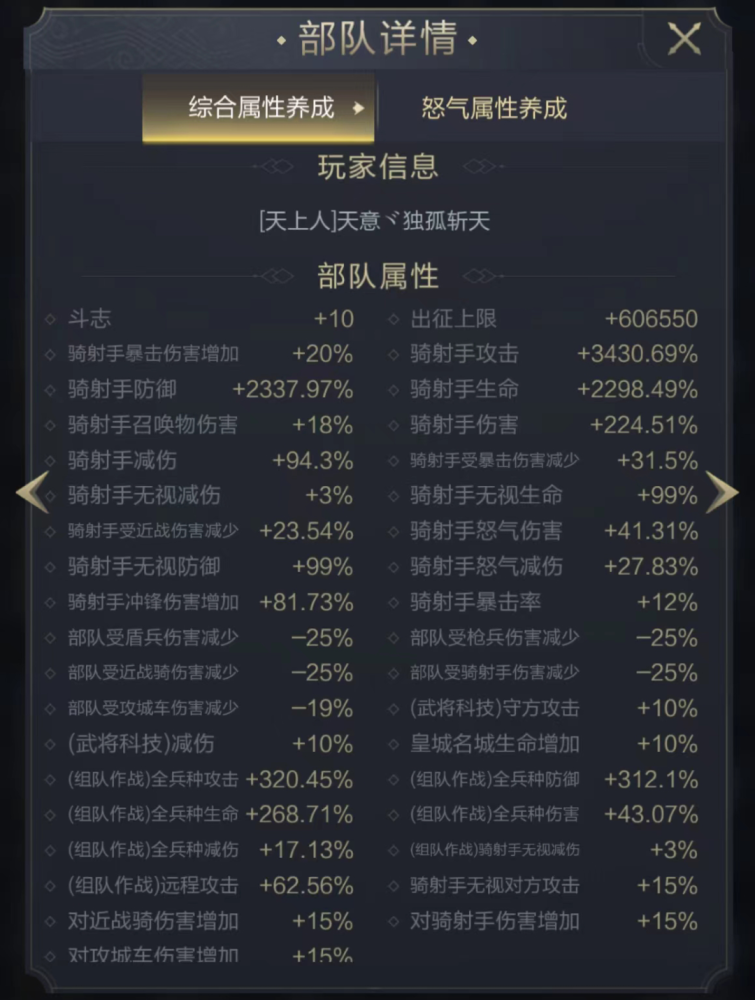 盟中轩轩、听云等人的近战骑作为实力担当,盾奶平民主公的付出也是功不可没,没有他们,输出都是白搭。至于我嘛,讲究多兵种均衡发展,比较在意血防伤害免伤。