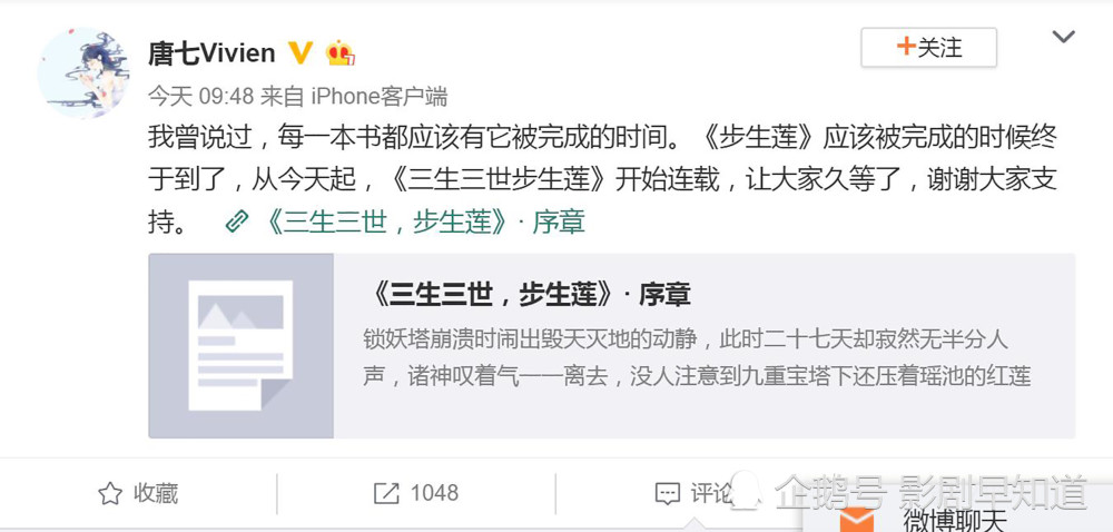 手机访问:wap.265xx.com唐七公子宣布《步生莲》重启,除白浅夜华凤九东华,他们也是官配