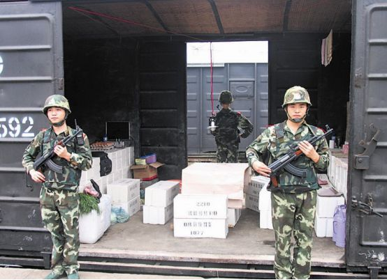 在行驶的过程当中,车厢通常被这些物资占得满满当当,最后留给押运兵的生活空间也只剩下一丁点。有时候还要去一些天气非常极端的地区执行任务,但即便是再冷,或者说是炎热到令人发指,他们也需要站在原地一动不动。整个运输过程当中,这些”押运兵“的上厕所时间都有严格的要求,如果碰上意外情况,押运的行程还需要一拖再拖。
