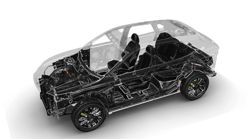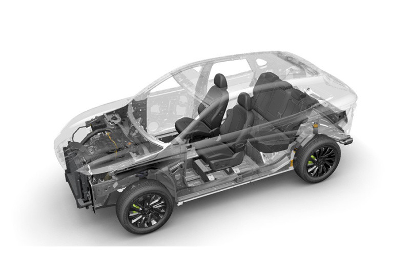 采用EMA-E结构打造的车型,整车高强钢占比超过60%,关键部位高强钢占比≥90%以上,并采用了全新优化硬点受力及零件结构,整体刚度提升18%。采用铝合金前防撞梁、热成型前纵梁后段、热成型前座椅后横梁的结构方案,安全性得到了更好的保障。