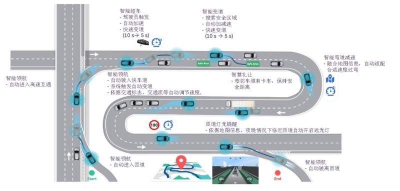 什么是高速NOA呢?从上图我们便可以很清晰的了解,高速NOA即是在拥有高精度地图的高速道路上,能够让汽车自动执行大部分驾驶操作,支持智能超车、智能变道、智能领航灯功能。