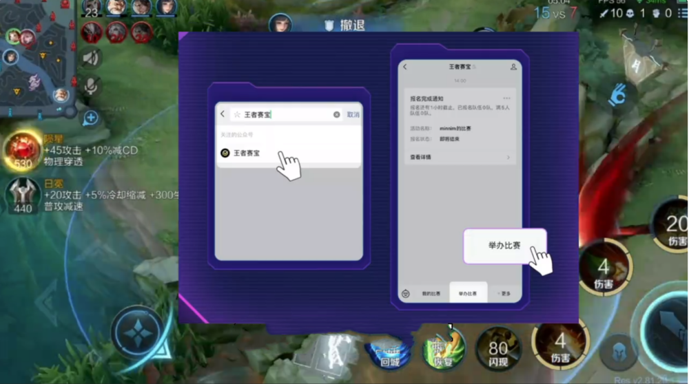 方法还是非常简单的,玩家只需要打开王者赛宝就可以了!在这里,点击举办比赛,创建1V1的对战模式。
