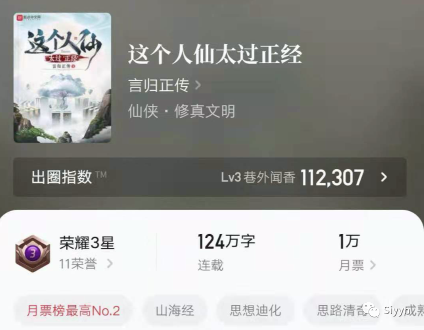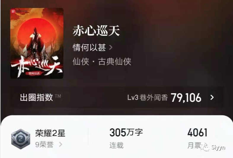 简评:这是一本非常传统的仙侠小说,据说作者本人也是一位写实体出版的。这本赤心的剧情其实有些慢热,直到最近几个月字数多了,才慢慢火起来的。如果喜欢传统仙侠的可以看看。