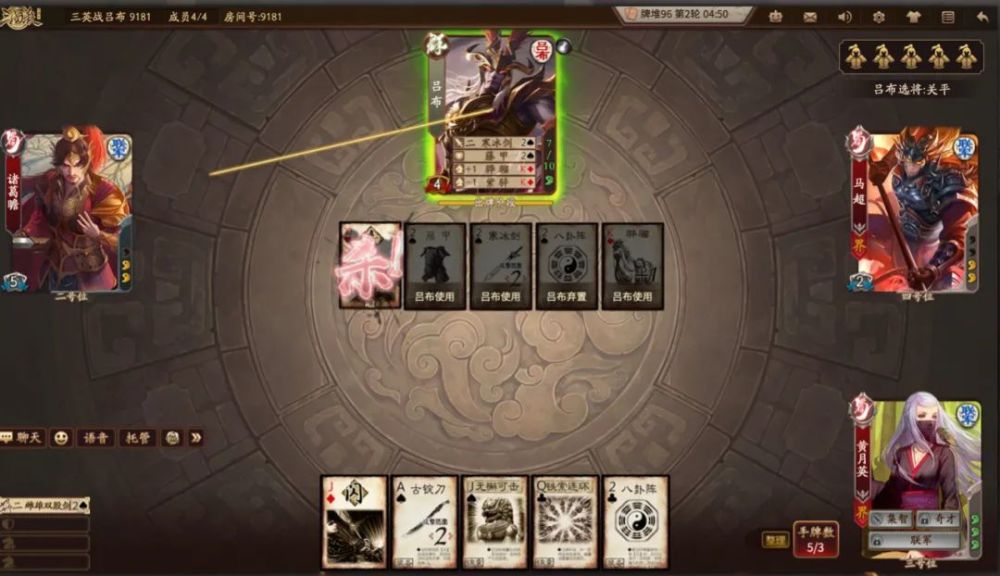 这阶段的吕布自带方天画戟,每回合两次杀,每次额外杀两个角色,加上超强的过牌能力,要命的是还兵不住,乐不住,这个版本的时候也没有那么多强将,因此只要成功开启回合,吕布秒杀三血脆皮压根儿不在话下。