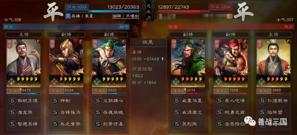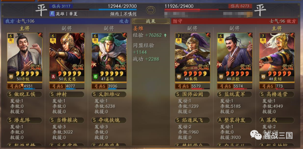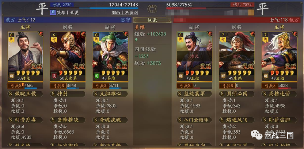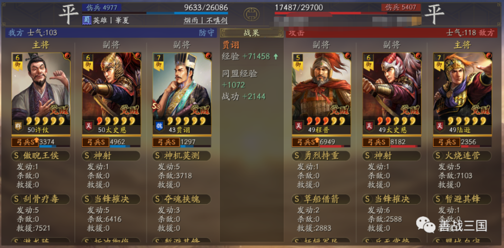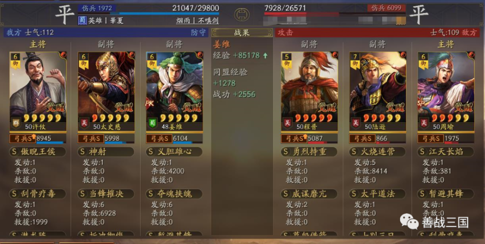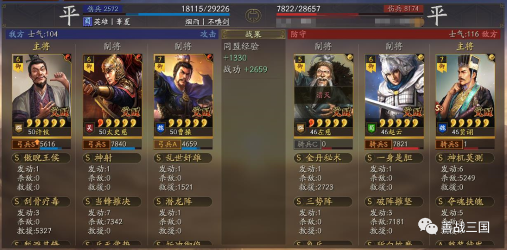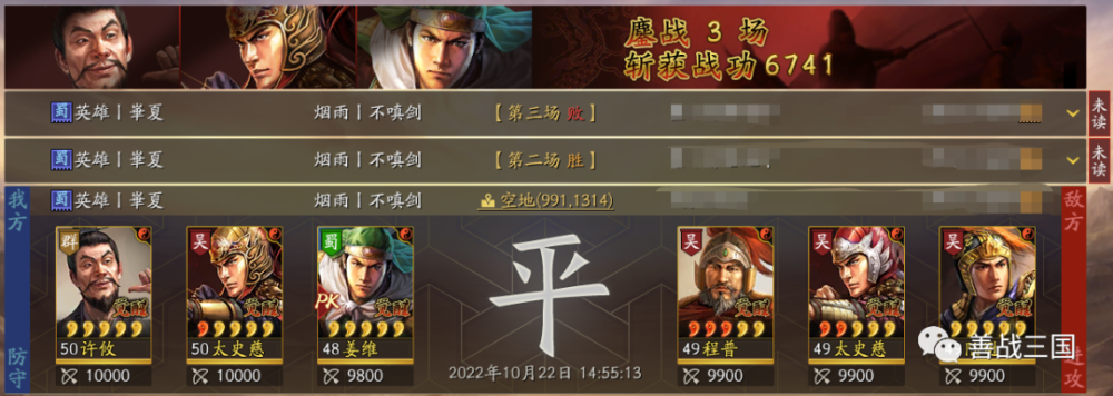 下期继续分享,许攸+太史慈+贾诩的混乱组合,让对手帮自己打破绽,潜龙和三势阵的对比,还有与曹操的组合给太史慈提伤的对比,以及许攸没有散记的加成差别。感兴趣记得订阅下
