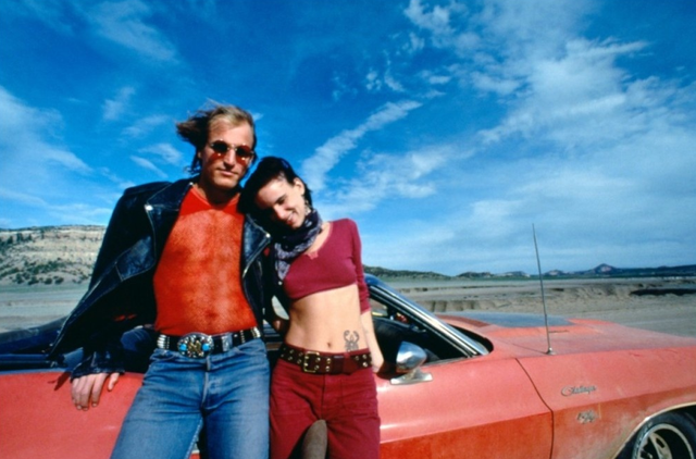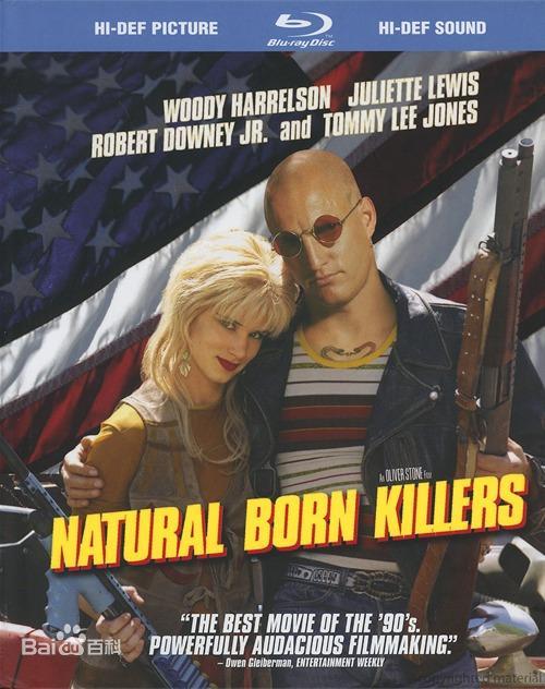 《天生杀人狂》讲述的是米基和从小受父亲性骚扰的梅勒,两人在杀了梅勒的父母后亡命天涯。途中,这对疯狂爱侣大开杀戒,杀人不计其数,结果被媒体渲成英雄人物,稍后这对亡命鸳鸯被捕入狱,闻风而至的电视主持人,为收视率,进入监狱对米基进行直播的访问,米基趁机搞乱,与梅勒逃出监狱的故事。