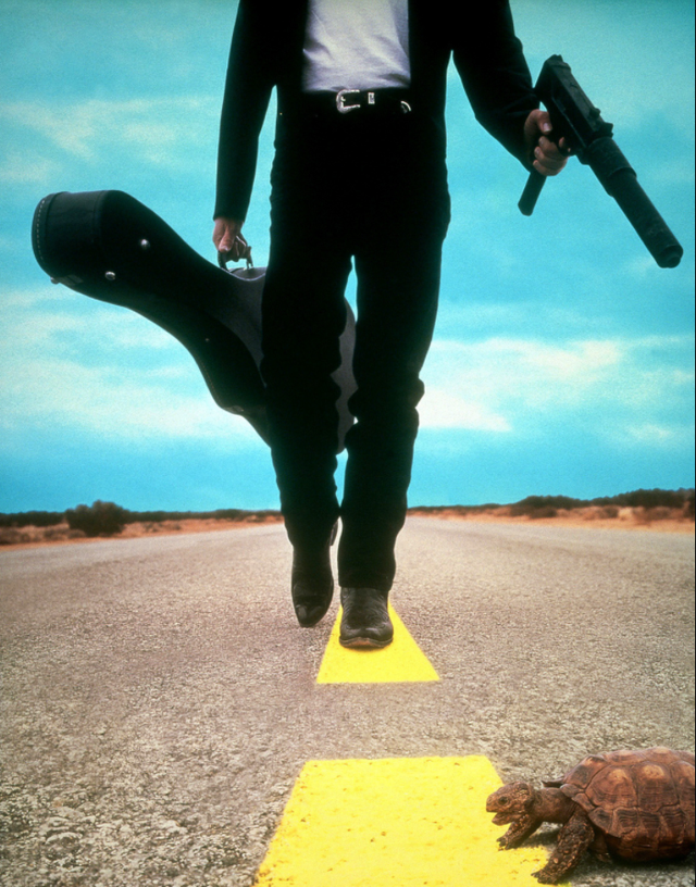 这是罗伯特的成名之作,罗伯特自掏腰包拍了这部低成本的黑色电影,结果一炮而红。影片讲述的是一名心狠手辣的罪犯成功越狱后,来到小镇伺机找他的仇家报仇,仇家的手下只知道那个罪犯将武器藏在吉他盒子里随身携带,而从来都没有见过他本人。一名流浪的吉他手凑巧这时来到小镇谋生,于是,莫名其妙的他就被卷入了一场不知所谓的追杀中。追杀的场面被导演演绎的笑料百出,黑色幽默表现的淋漓尽致。