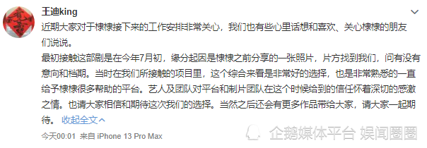 该剧是在《苍兰诀》播出之前7月剧方平台主动接触的,王鹤棣团队感谢平台和制片团队一直以来的支持。