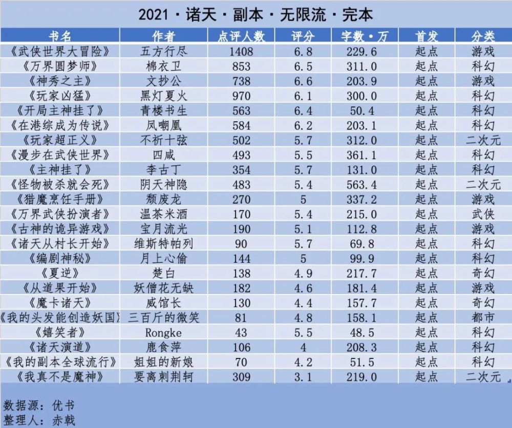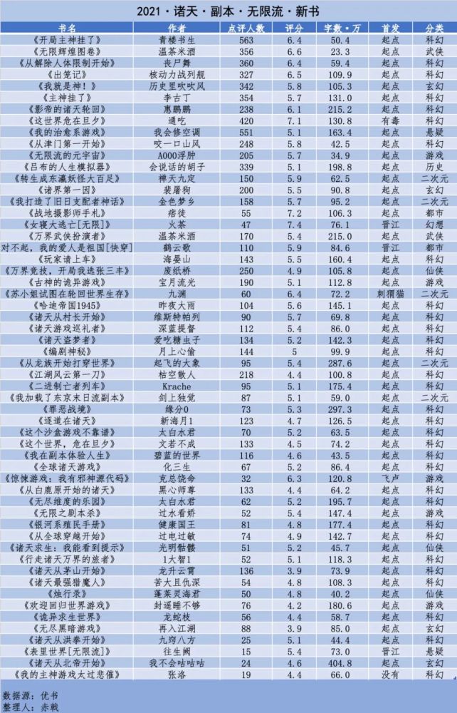 这是2021年度系列盘点的第五篇,无限流,诸天流为主的科幻篇,因为科幻篇篇幅太大,所以分为两期,本期文章以穿越各个世界的无限主题的作品为主。选书范围限定在2021年的完本书和新书。肯定有遗漏,欢迎大家在留言区补充,推荐。