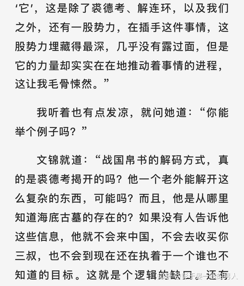 这基本就是原著结局给出的答案。其实逻辑还是有bug的,比如疗养院的文锦写的笔记证明他们去过云顶天宫,并且看到了终极。 但是作者在结局给出的答案是假文锦被骗去了云顶天宫。