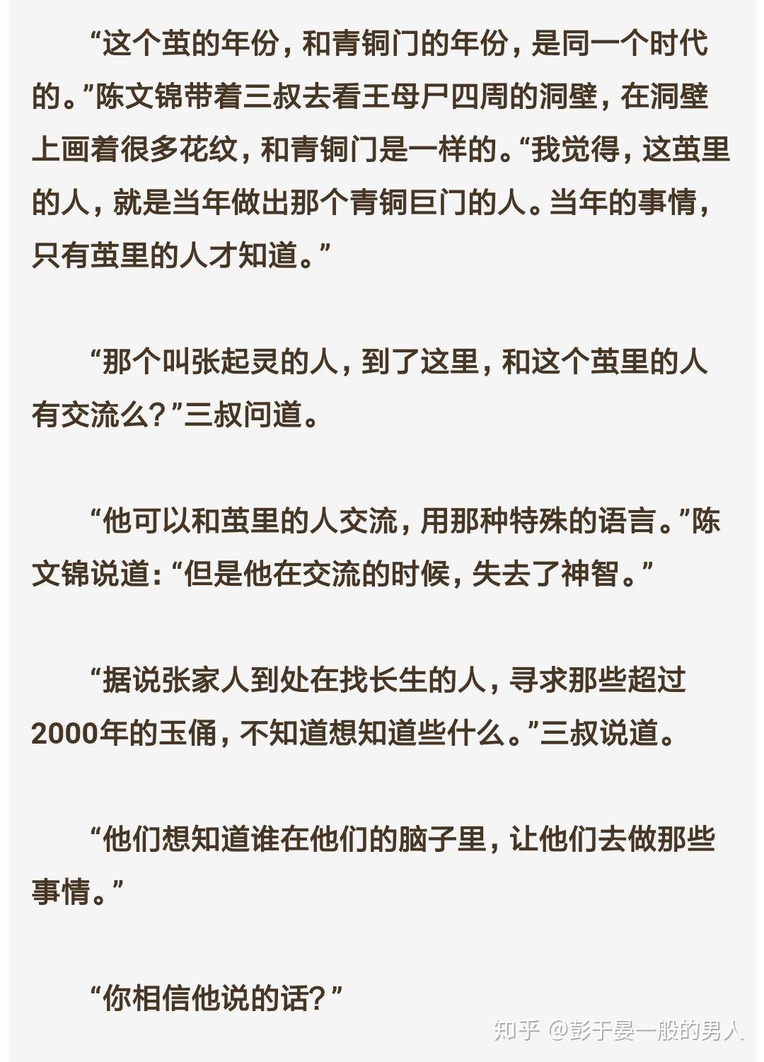 还有青铜铃铛到底是啥也没说,鲁王宫,海底墓,张家古楼等地方都有青铜铃铛。齐羽又是谁? 这些坑可能要到后续才解开吧, 总之主线剧情大概是通了。