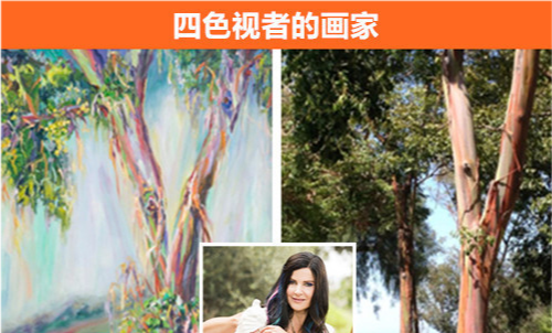 因为视网膜上有四个视锥细胞视网膜, ConcettaAntico,美国著名画家, 以科学为后盾, 女画家的超视力可以看到一亿种颜色 而普通的人只能看见10万到15万种。这个惊人的数字是怎样产生的?是什么原因导致这种神奇的现象发生的呢?科学家们对这些问题进行了深入研究。结果发现。 根据医生的说法,孔切塔·安蒂科拥有一种罕见的遗传基因,可以在她的眼睛里提供第四种颜色受体,这多亏了她非凡的美术天赋,通过杰作画布上色彩斑斓的油画揭示了世界之美的真相。