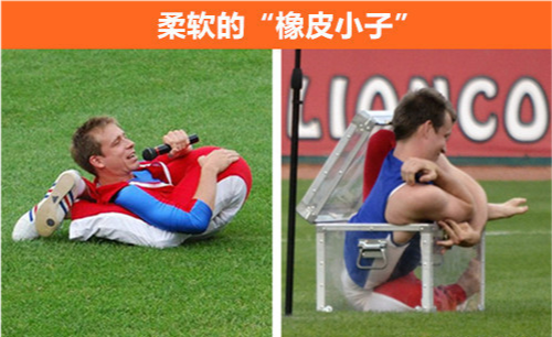 丹尼尔·布朗宁·史密斯:又名“橡皮小子” 他是一位优秀的运动员,并且有着出色的运动天赋,但同时他也是一个典型的骨伤患者。他曾经被诊断为严重嵴髓损伤,但是最终他却奇迹般地康复了过来。 到目前为止,由于埃勒斯·丹洛斯综合症,史密斯已经创造了七项吉尼斯世界纪录,这使他的身体变得非常柔软,可以随心所欲地做任何困难的动作。