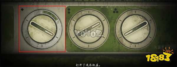 在这里能够调查洗衣机,上面有三个仪表盘需要转动,现在还没有线索。