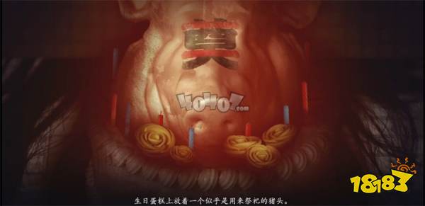打开变电箱之后,我们先点开红色开关,之后再次走进尸体,拨开尸体上的头发,能够看到一个猪头。