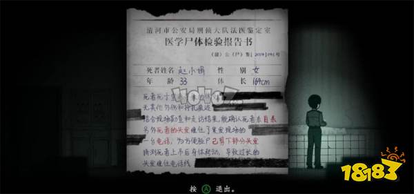 在这里我们向右走,能够看到一具尸体。通过互动能够看到田小娟的尸检报告书。