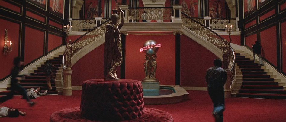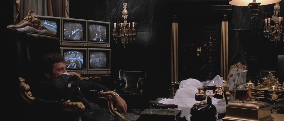 我怀着好奇心又看了一下电影,但当我看到托尼最后住的红色墙壁大别墅和办公室内那一排排的监控屏幕时...我基本确定《疤面煞星》这部电影和罪恶都市一定有很多的内在联系
