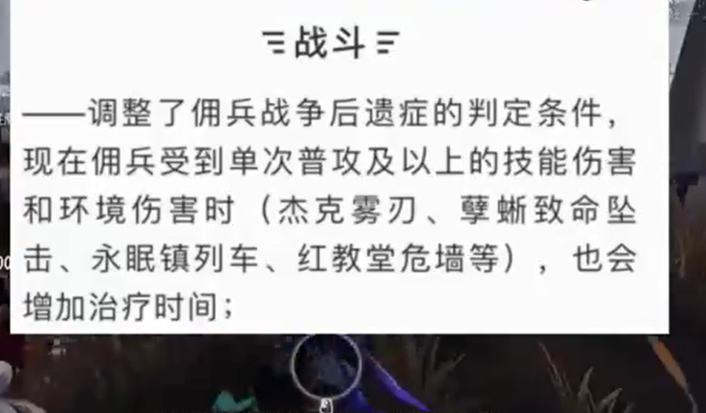 hello,大家好,我是你们身边的游戏小编,今天给大家带来的内容是佣兵的“战争后遗症”被改,被电车撞也算后遗症了,喜欢的小伙伴们就跟小编一起来了解一下吧。