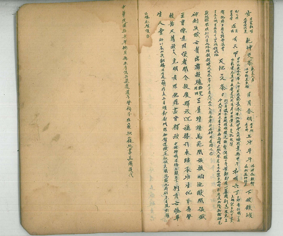 古籍手抄本《洞玄先天秘旨卷》一册,共52筒子页100多面,民国十三年徐正宇抄录。系统讲解了清幽斋醮科仪的秘旨,包括建坛、敕水、请光、通真、炼度等,完整详尽,是同类中罕见的版本。内容包含:洞玄灵宝斋坛预修行仪细讲袖珍秘旨、全前解秽秘诀、扬旙论、开启行科论、诸品经论、肃建朝仪论、捲簾品论、肃启行香照科并秘旨、洞玄灵宝斋醮玉阳祭炼行仪家传内旨、五行相生配合成准之工、道尊出世讲、破狱之工等等。文/道兰书局