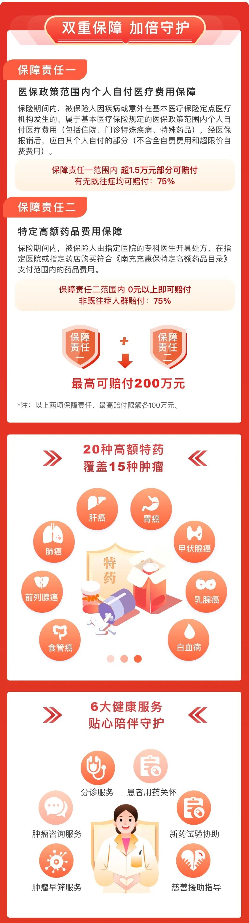 服务升级,提供肿瘤早筛服务、肿瘤咨询服务、分诊服务、新药试验协助等6项健康管理服务,让参保人享受更好的就医体验。