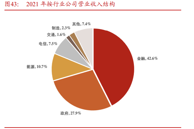 客户积累深厚,政府侧与金融侧国产替代具备先发优势:从下游客户分布上来 看,公司在政府、金融、电信领域具备显著竞争力,收入体量与项目经历皆处于 行业领先地位。在政府领域,公司是唯一进入领导者象限的国产中间件厂商,产 品已被中央与地方省市多单位采用,随政策推进政务领域信息化建设驱动,相比 其馀国产厂商,公司具备更多政府客户为其产品实力背书,在国产替代大环境下 存在一定先发优势; 而在金融领域,公司与普元是唯二处于挑战者象限的国产厂 商,当前客户已覆盖中国人民银行、城市商业银行等大型金融机构。