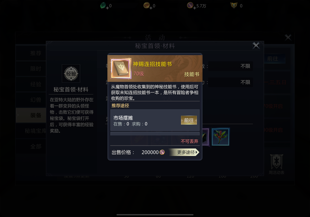 这个活动的优势在于,它的门槛比较低,并且没有战力限制,只要玩家到达55级均可以参加, 并且在击败秘宝首领后,便可以获得不少的材料奖励,其中比如大地宝钻以及神赐连招技能书的价值以及玩家需求度都比较高,是非常好的搬砖方式。