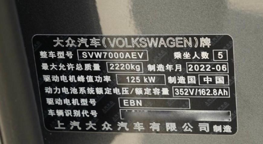 查看2023款上汽大众ID.3车身铭牌上的的配置信息,我们会发现,新款ID.3的电池容量为52.8kWh,相较2022款车型57.3kWh电池容量缩水了4.5kWh。除此之外,新款ID.3的电池能量密度也从2022款的170Wh/kg减少为155Wh/kg。