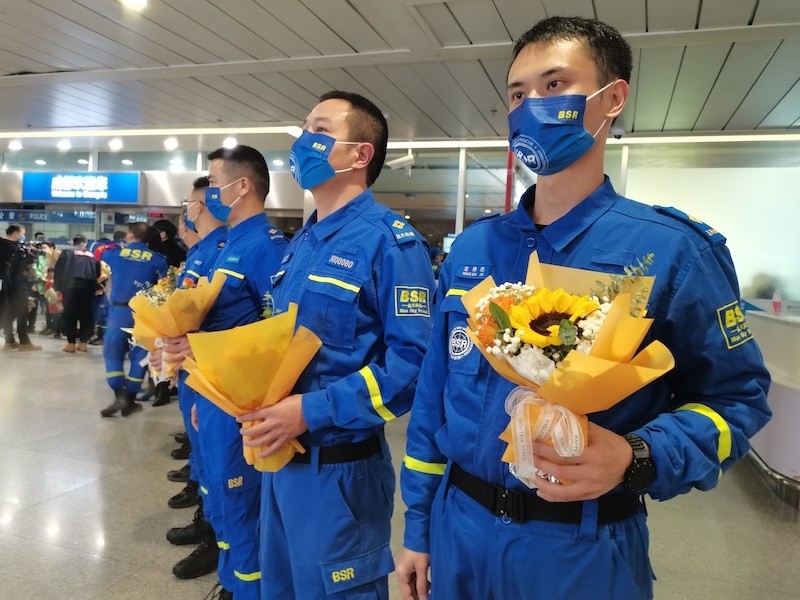 此时此刻,在四川成都双流机场T1航站楼,掌声雷动,一片欢呼,援土耳其四川蓝天救援队与土耳其当地救援队伍完成工作交接,平安归来!