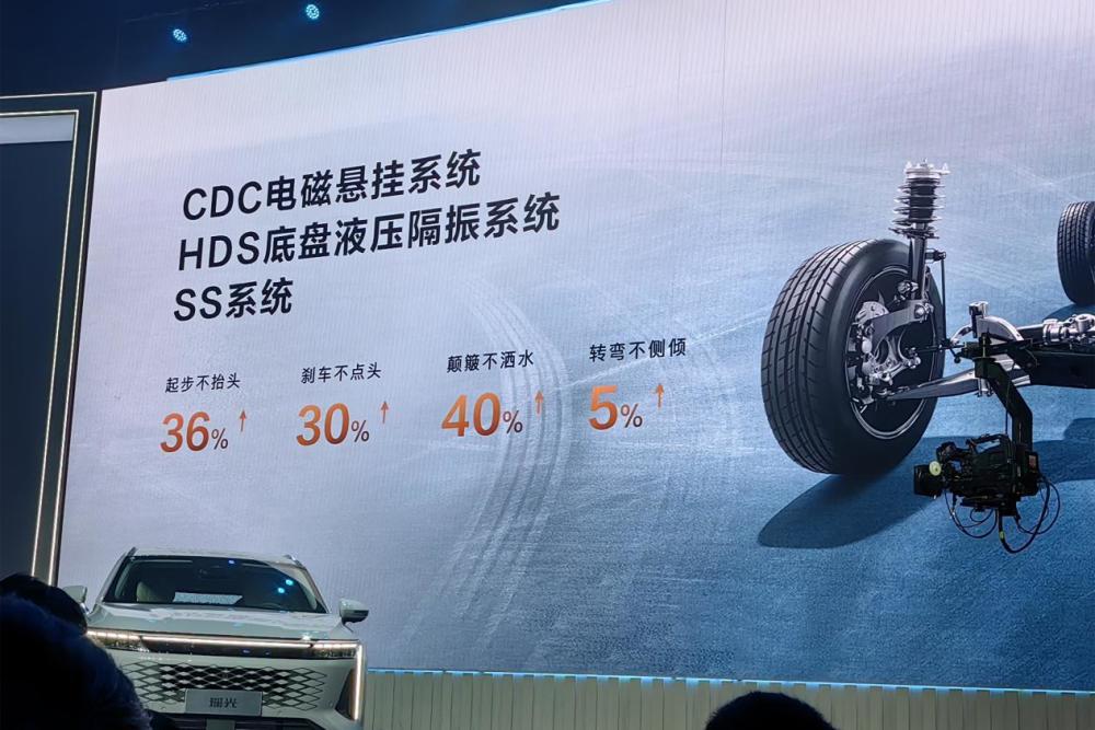 值得一提的是,星途瑶光这款车还搭载了CDC电磁悬挂系统,该系统可提升车辆的隔震性能和抗侧倾能力,带来更好的乘坐舒适性和操控稳定性。官方数据显示,星途瑶光在CDC电磁悬挂系统的优化下,可获得5%抗侧倾能力和40%隔震性能的提升。