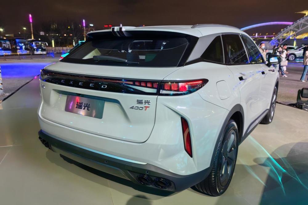 在车身尾部,星途瑶光搭载贯穿式尾灯,两侧尾灯内部采用矩阵式设计,点亮后的辨识度和精致感都很不错。另外,新车利用四出排气装饰来提升尾部的运动感,而真正的排气口采用了隐藏式设计,并且是双边共双出的布局。作为一款燃油SUV车型,星途瑶光的尾部带有“400T”的标识。
