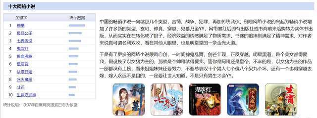 不过百度的流量大家也知道,虽然不能代表全网,但这个榜含金量肯定是有的,尤其是13年以前,那个时候它还没涉足小说业务,同时也是国内最大的搜索引擎,那根据数据排出来的榜还是相当公正的,现在嘛,只能说看看就行。