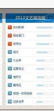 这年同样没有网络文学排行榜,不过新增了个文艺潮流榜,也就是原本只计算网文的,13年的时候它连实体书也一起算进去了。不过上榜的大部分还是网文,毕竟看实体书的一般很少在网上搜书名。