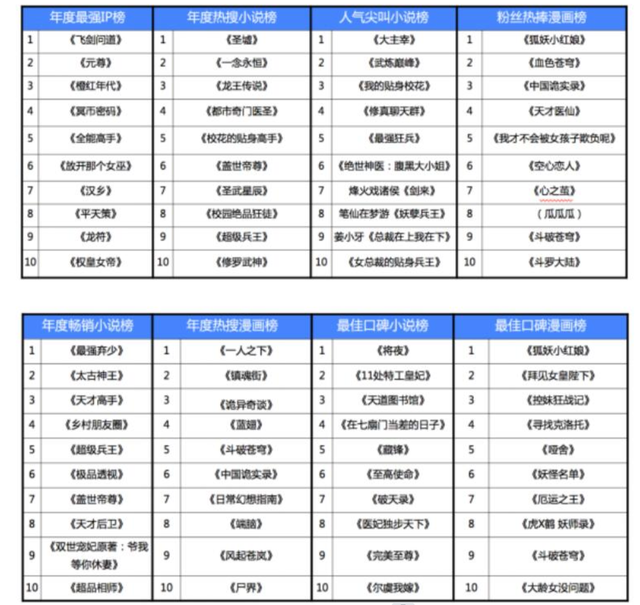 这三年的年度风云榜都没有排出年度十大网络小说。