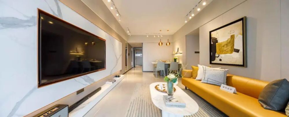 在尺度达约3.6米宽的客厅里,摆上大电视,或者搭个幕布投影,空间也不局促。