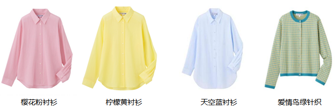 樱花粉、柠檬黄、天空蓝、爱情鸟绿等俏丽新色,营造柔美清新的春日氛围。