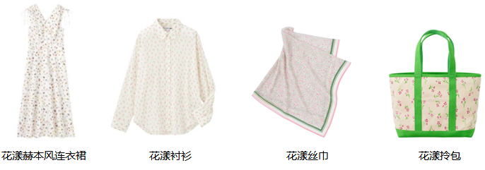 设计师甄选异域花卉元素,蔓延在赫本风连衣裙、春日衬衫之上,翩跹悦动,浪漫灵动。