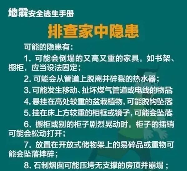 如果住的是水泥现浇板或水泥预制板屋顶的房子,地震发生时,可以立即进入厨房、厕所等处,因为这些地方开间小,有上下水管道连接,既能起到一定的支撑作用,又可能找到维持生存的水和食物,有可能减少伤亡。