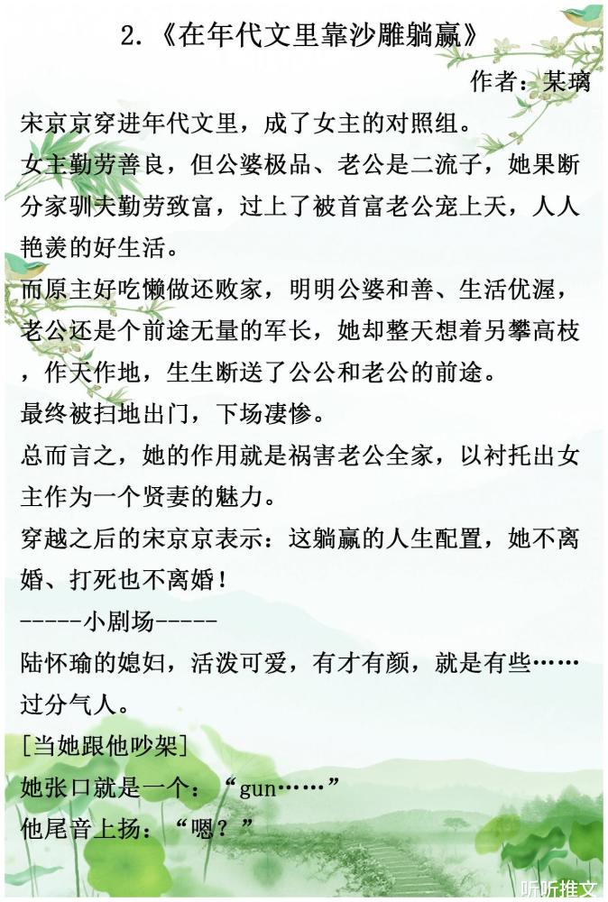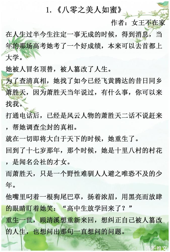 今日推荐三本年代文,暖甜可爱,力荐《八零之美人如蜜》《在年代文里靠沙雕躺赢》,故事有趣清新,作者文笔不俗,大家一起收藏吧。