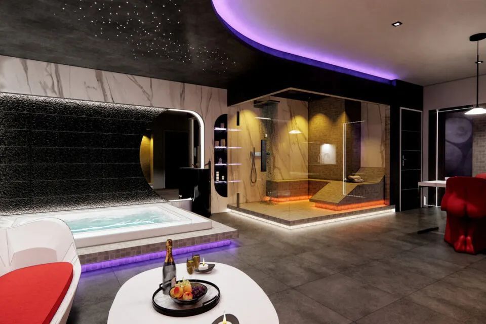 这所奢华、迷人的“爱情小屋”里不仅配有按摩浴缸、土耳其浴室,还有一些精心布置的“游戏”场地。