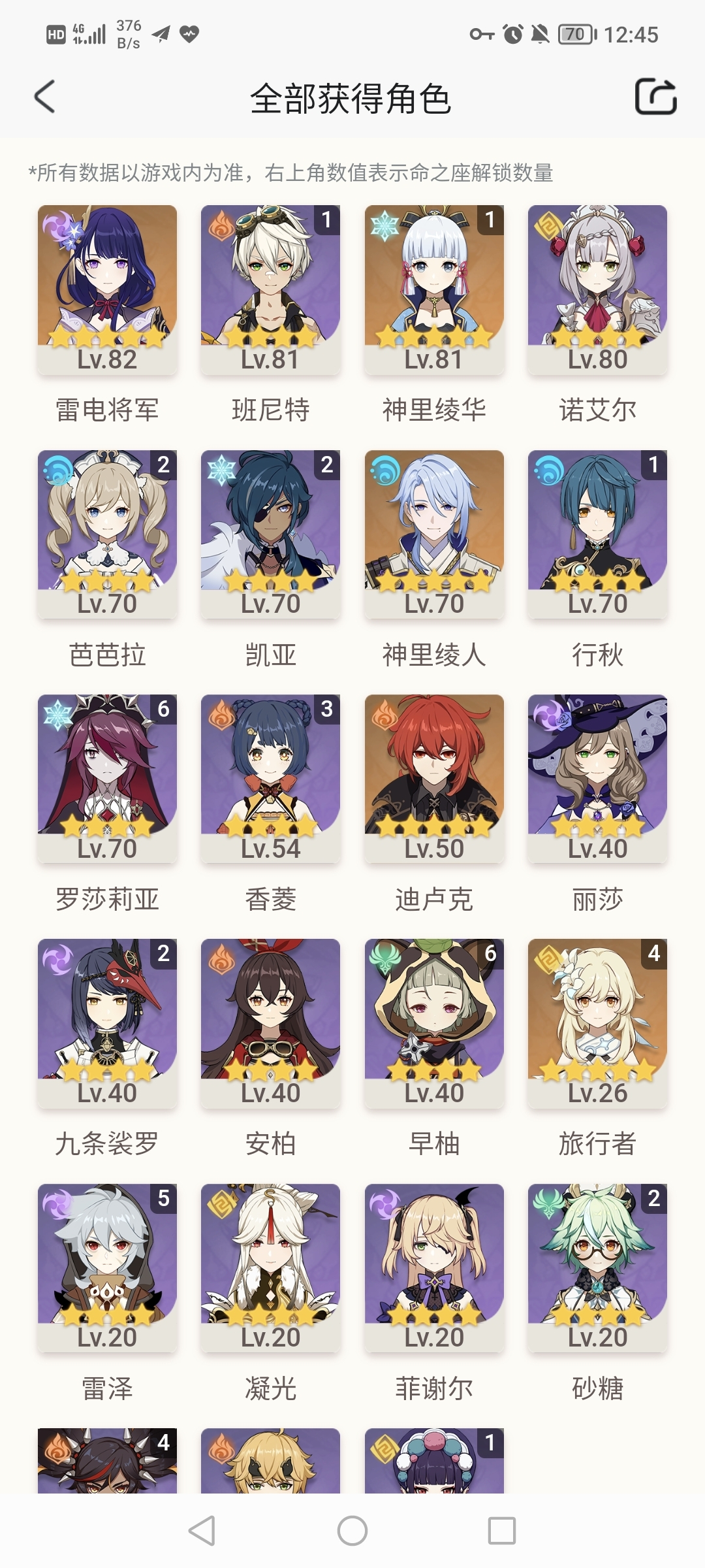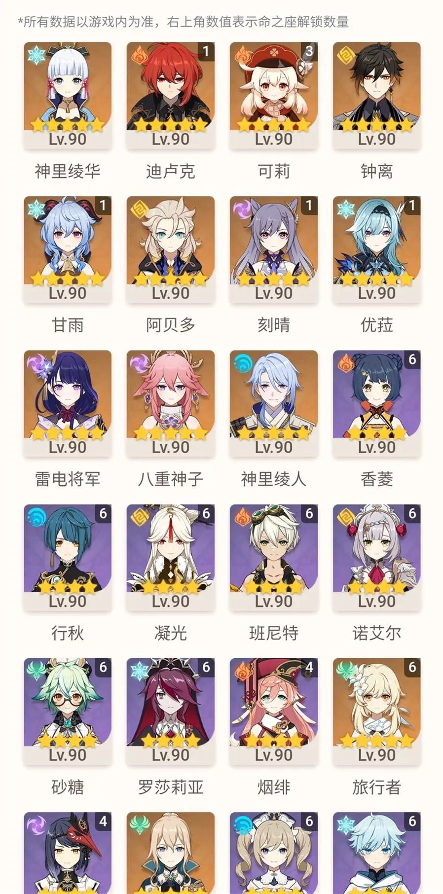 还没我肝,我七十天就全部百分百了。我还把雷神,绫华,香菱,班尼特升到了九十,行秋,莫娜,温迪,罗莎莉亚,芭芭拉都突破八十了的。九十级武器有三把,八十级武器好几把。