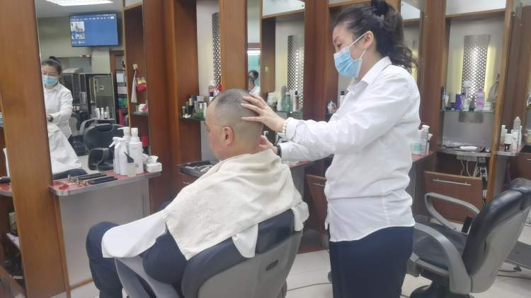 市民苏女士今天与朋友相约来这里剪头发,一进门就招呼熟悉的理发师:“快帮我朋友看看,她适合什么发型?”“好好好,稍等稍等,你们坐,我剪完这个就帮你们看!”