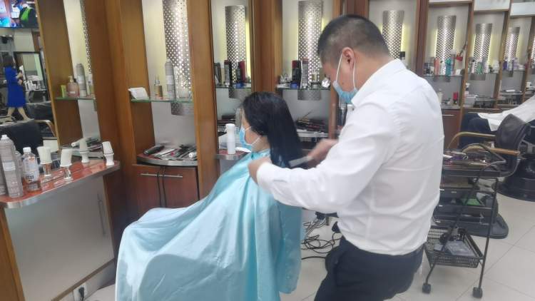 苏女士五十来岁,一头柔顺的黑色短发,刘海长得有点遮眼睛,但发型看上去丝毫不乱。“我是五星级酒店里面做的,服务行业比较讲究形象,大概一两个月来一次修一下发型。今天带朋友过来,帮她也设计一下发型。”