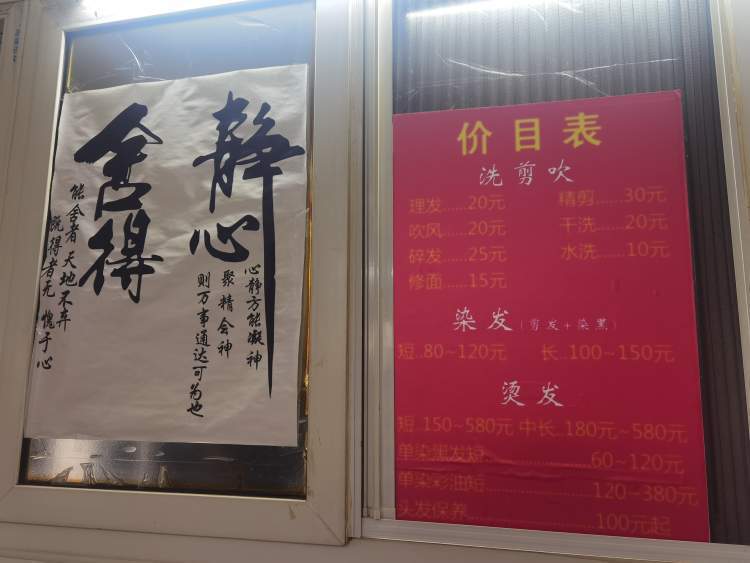 店主与熟客都知道,最基础的剪头不挣钱,挣钱的是烫染。相比外头理发店烫染动辄可上千,这家便民理发店的女士烫染从一百元到五百八十元不等,顾客报一个价格,张阿姨根据价格来选药水,无论多复杂,在这个价格区间内就封顶了。