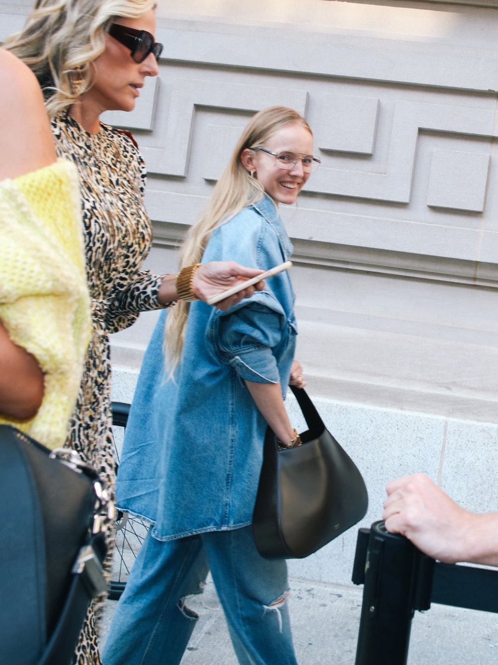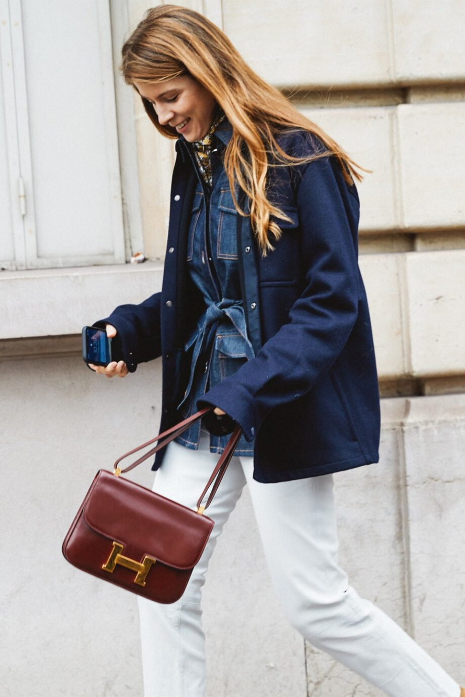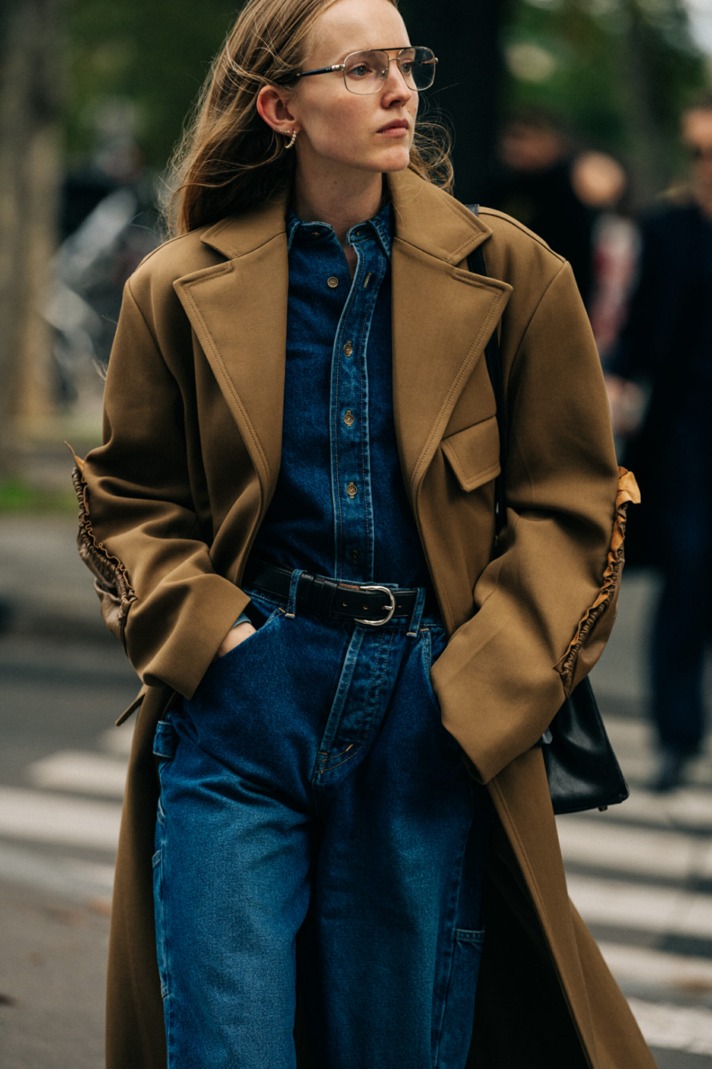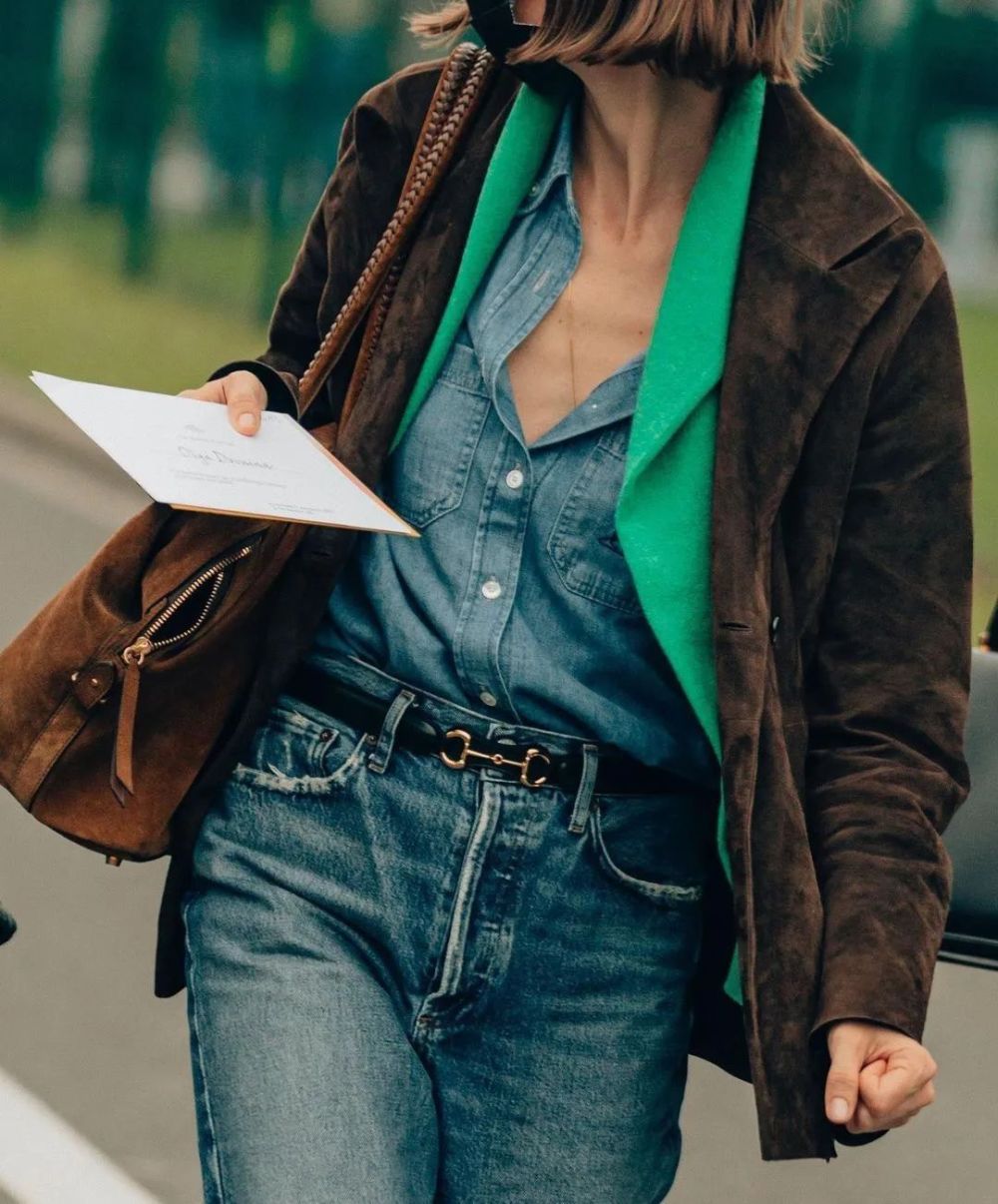 我猜10个人里面有8个都会想到搭牛仔裤,毕竟90%的街拍都是这么穿的,denim on denim?确实也很流行。