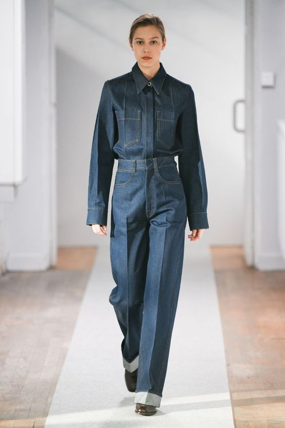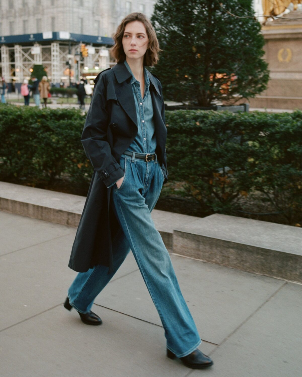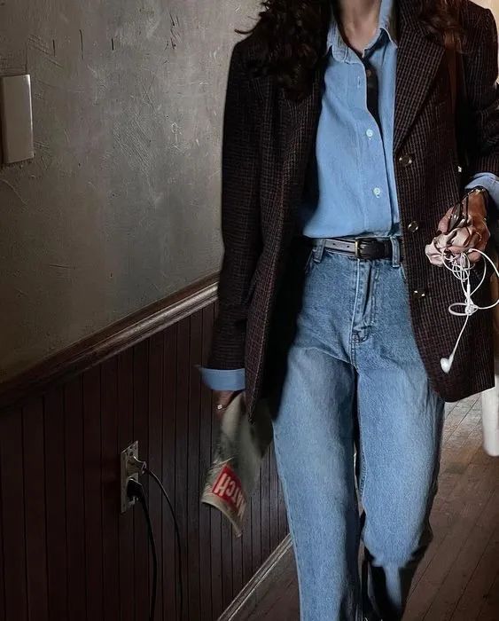 牛仔蓝本身就是个百搭色、还有一定提亮效果。衬衫领呢,又可以拯救很多没精神的单品。而且它自带休闲气质,不用担心穿得严肃老气。▼