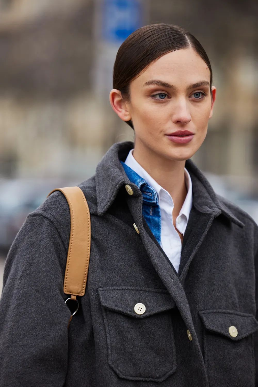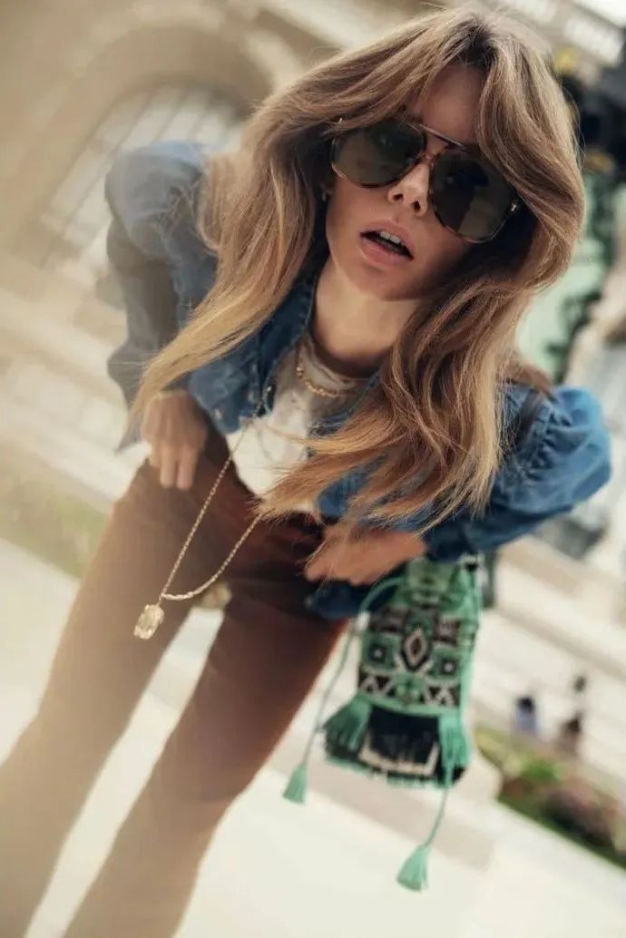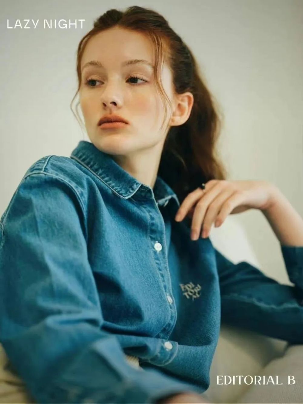 牛仔衬衫正式感没有那么强,风格更加洒脱率性,因此头发“乱”点好。