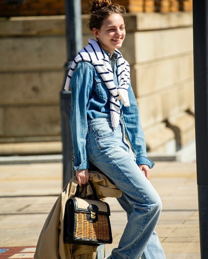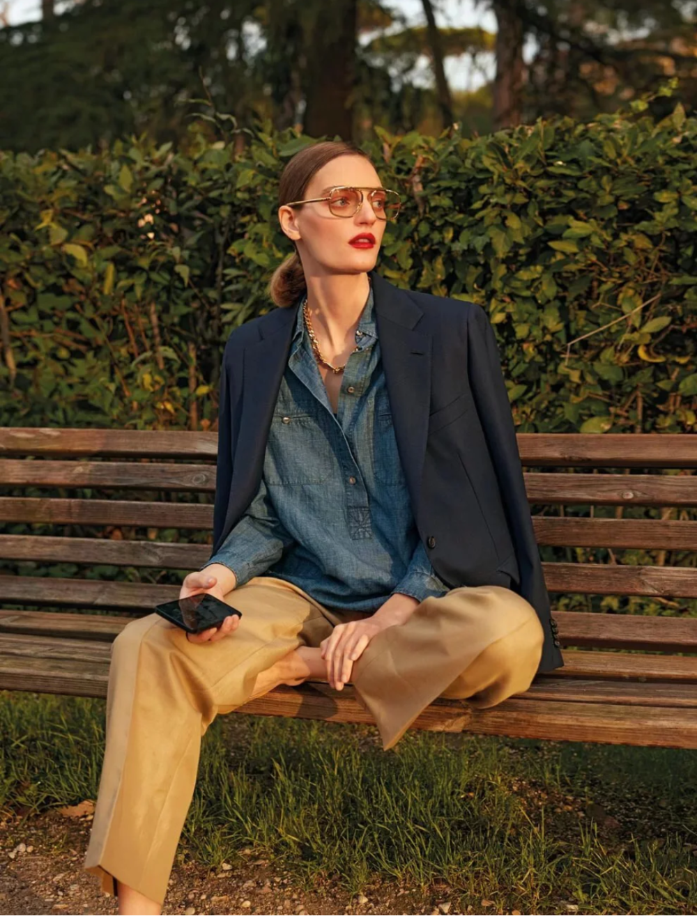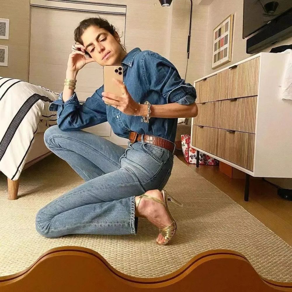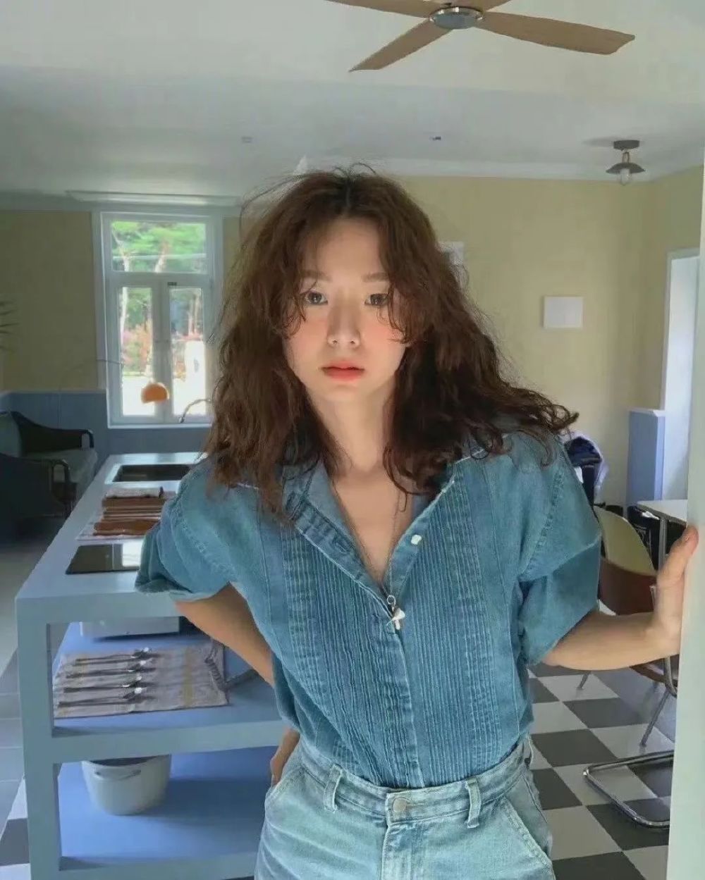 牛仔衬衫正式感没有那么强,风格更加洒脱率性,因此头发“乱”点好。