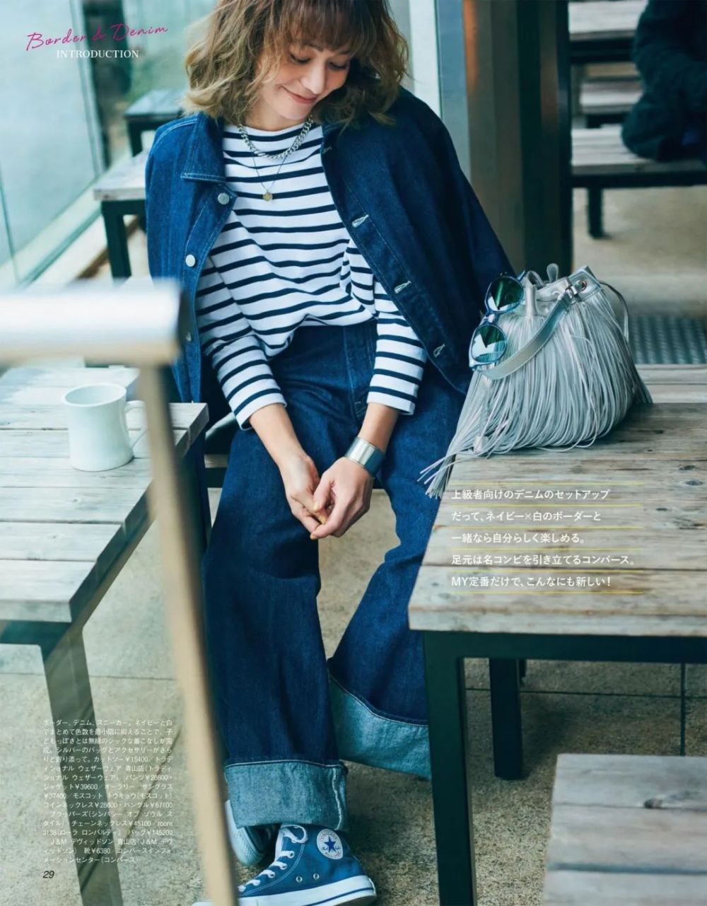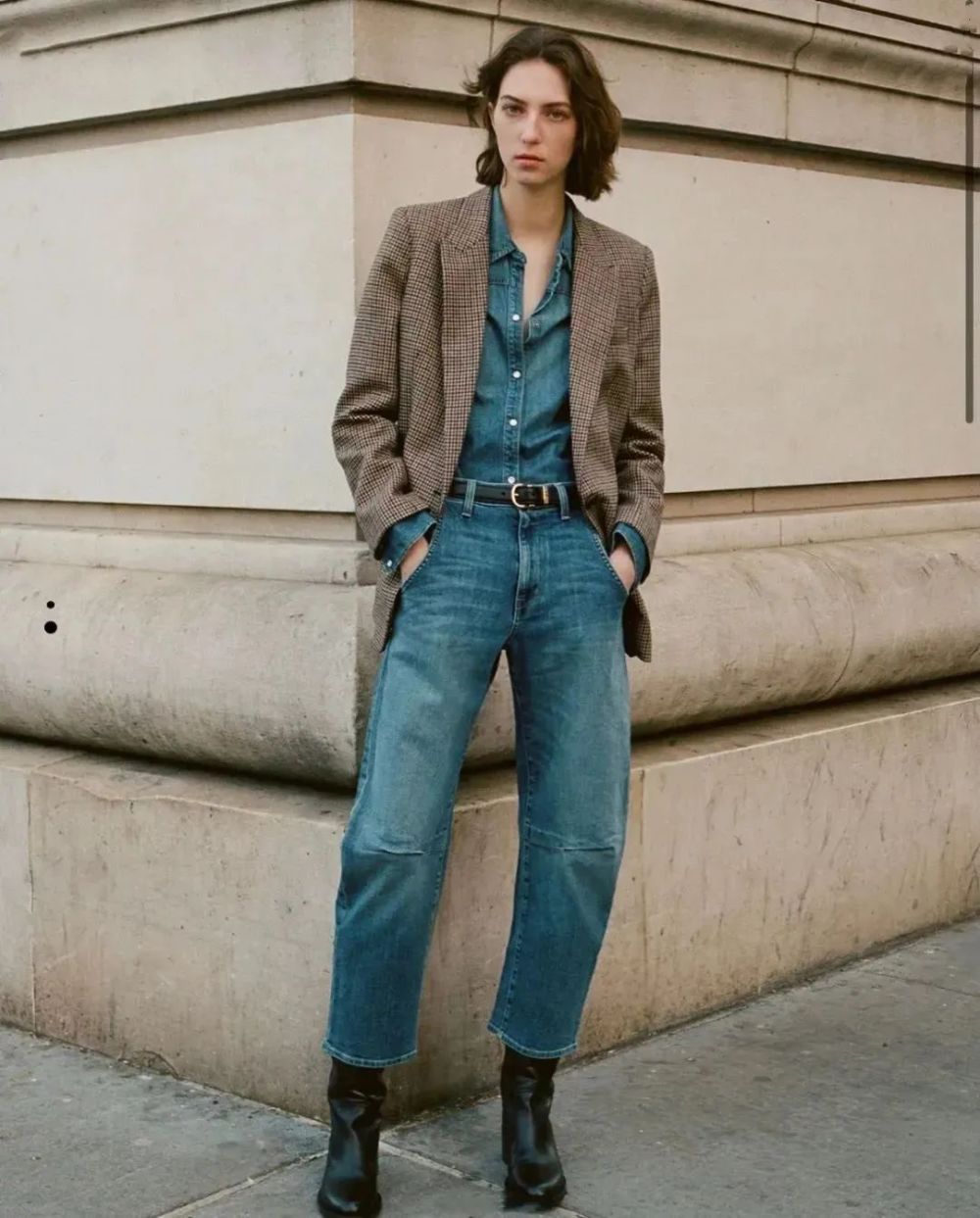 从趋势上看,现在更流行搭配略宽松的牛仔裤,多一分松弛感。▼