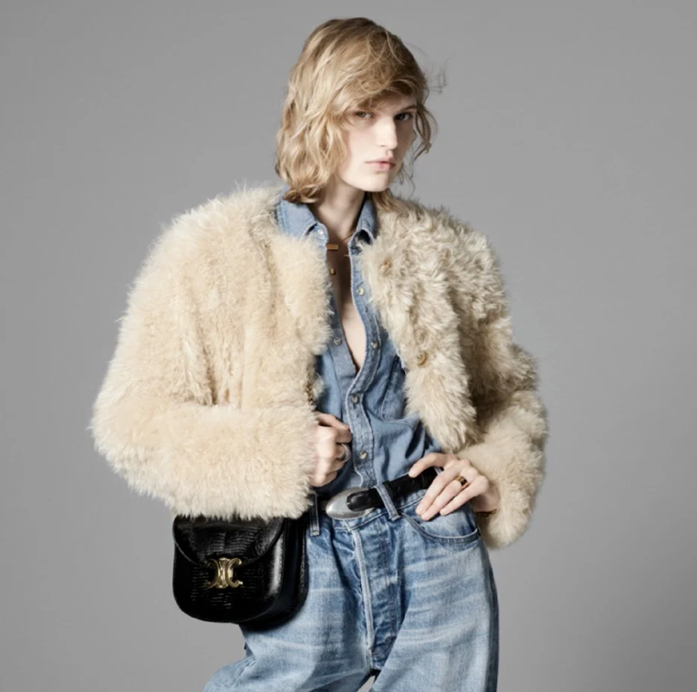 容易显“壕”气的仿皮草外套,也可以用牛仔衬衫来压一压,贵气-1,随性感+1。▼