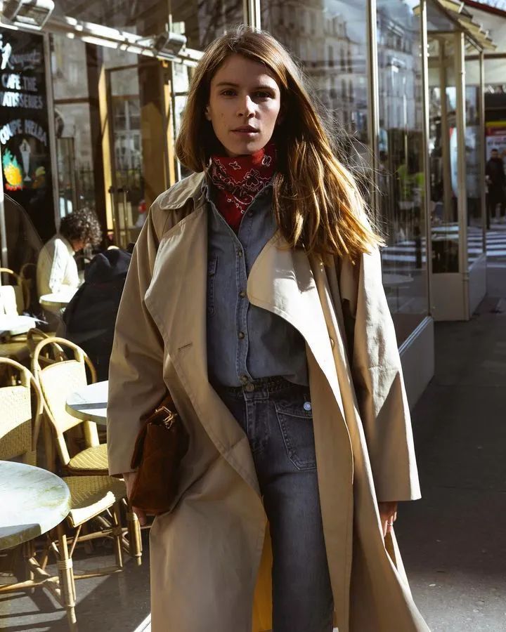为什么是红色呢?除了红蓝经典配色,其实牛仔衬衫+红色领巾,本身就是一个定番组合。▼
